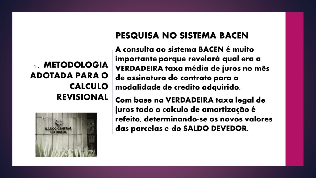 Percebeu como é importante a pesquisa no sistema BACEN? É ela que determina os parâmetros do calculo que revelará o desfalque sofrido pelo mutuário, financiado.