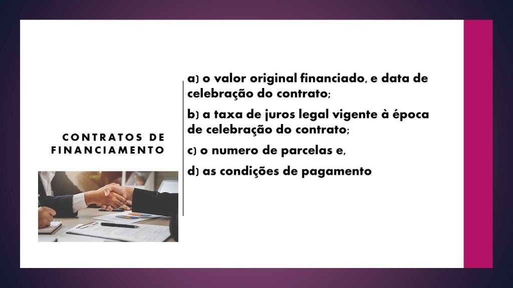 A data da celebração do contrato também é importante porque a taxa de juros aplicada no contrato de financiamento tem de ser aquela que o BACEN – Banco Central do Brasil determinou como regra geral à época de celebração do contrato;