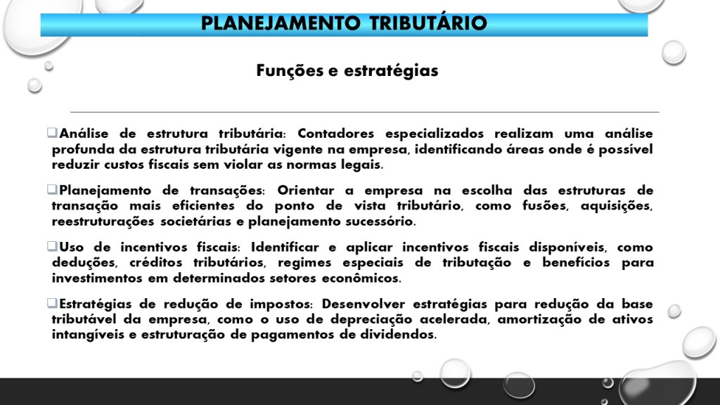 - Estratégias de redução de impostos: Desenvolvem estratégias para reduzir a base tributável da empresa, como o uso de depreciação acelerada, amortização de ativos intangíveis e estruturação de pagamentos de dividendos.