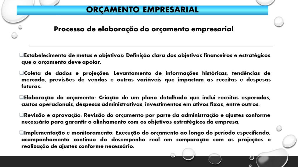 - Revisão e aprovação: Revisão do orçamento por parte da administração e ajustes conforme necessário para garantir que esteja alinhado com os objetivos estratégicos da empresa.
