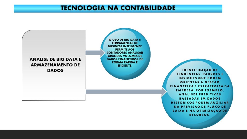 O uso de big data e ferramentas de business intelligence permite aos contadores analisar grandes volumes de dados financeiros de forma rápida e eficiente. Isso possibilita a identificação de tendências, padrões e insights que podem orientar a gestão financeira e estratégica da empresa. Por exemplo, análises preditivas baseadas em dados históricos podem auxiliar na previsão de fluxo de caixa e na otimização de recursos.