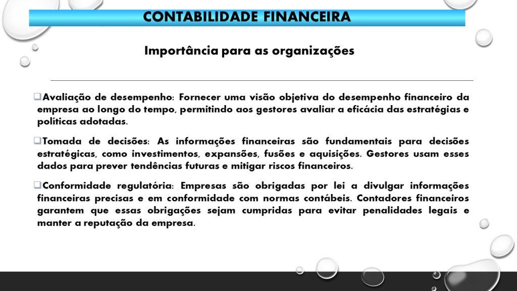 A contabilidade financeira desempenha um papel vital nas operações e na governança das organizações por várias razões: