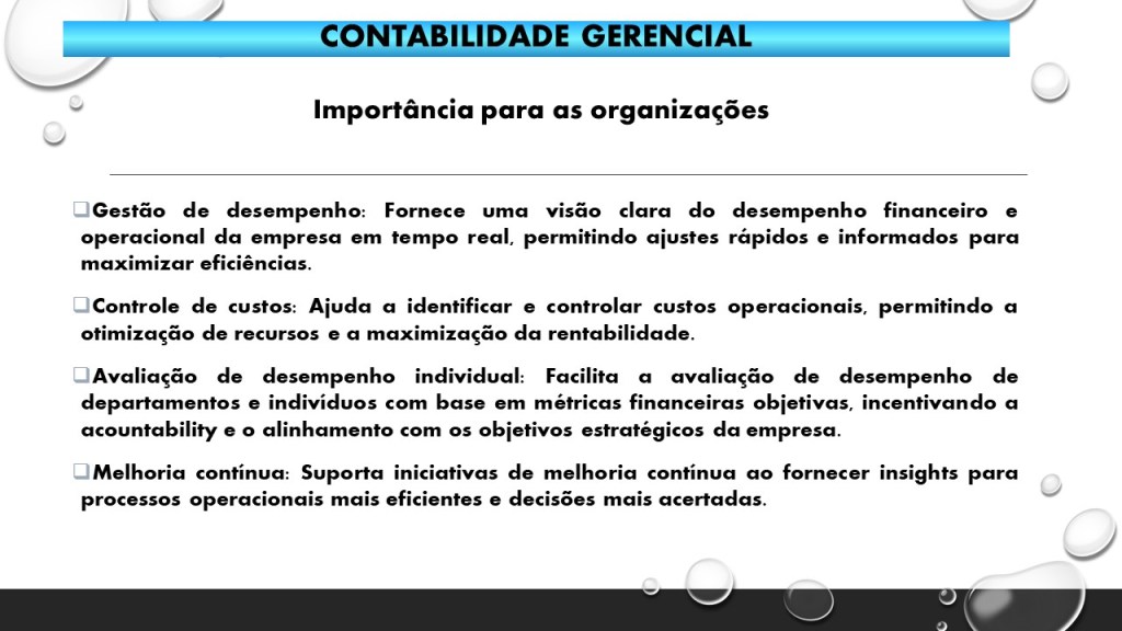 A contabilidade gerencial desempenha um papel fundamental na gestão eficaz das organizações por várias razões: