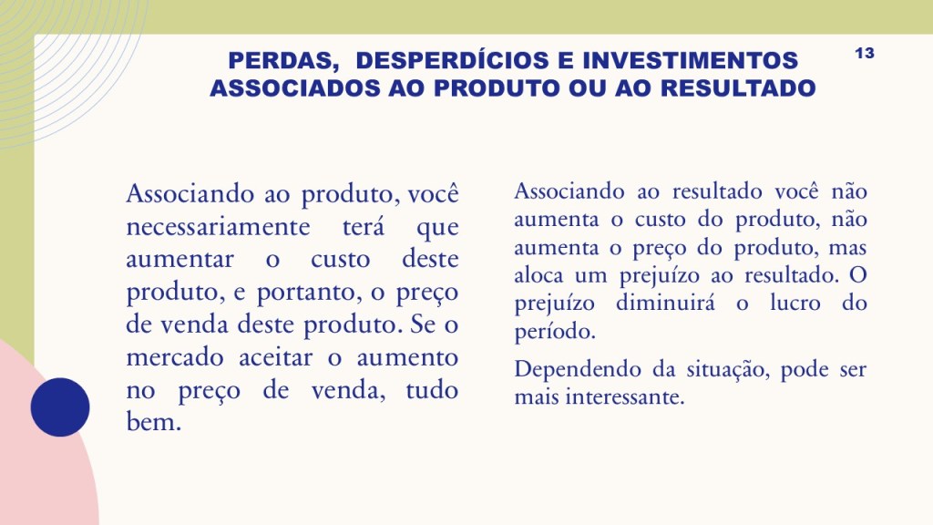 O custo está sempre associado ao produto, sempre,