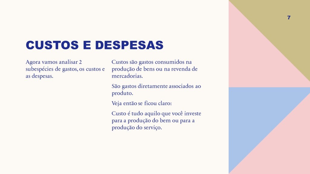 Agora vamos analisar 2 subespécies de gastos, os custos e as despesas.