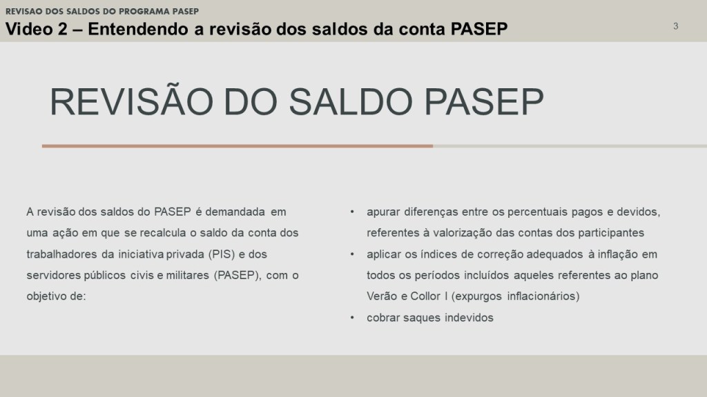 Você decide entrar na justiça com uma ação de Revisão dos saldos do PASEP.