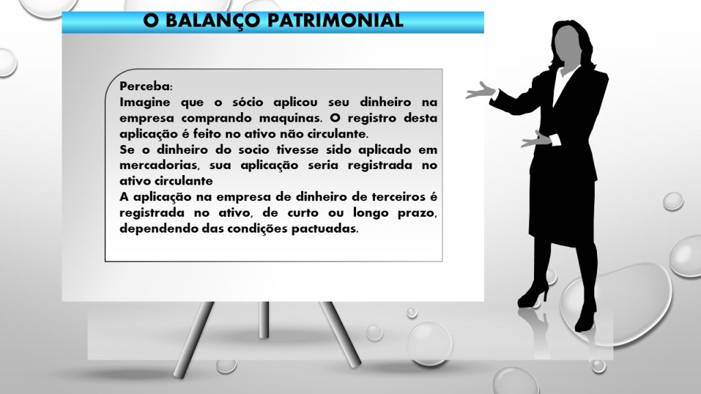 Imagine que o sócio aplicou seu dinheiro na empresa comprando maquinas. O registro desta aplicação é feito no ativo não circulante.