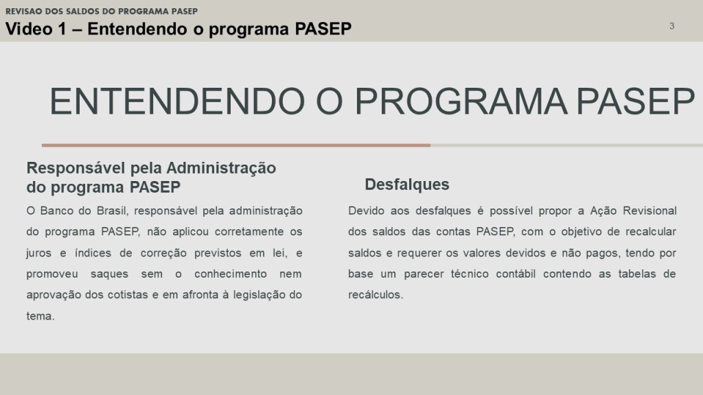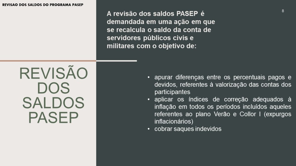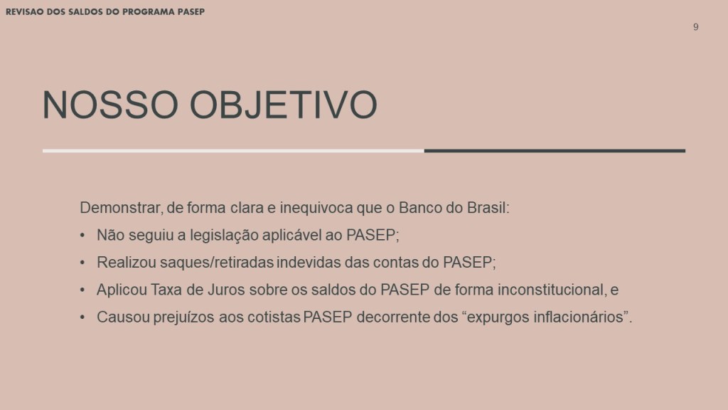 Em resumo, a ação Revisional dos saldos da conta PASEP tem o objetivo de demonstrar, de forma clara e inequivoca que o Banco do Brasil: