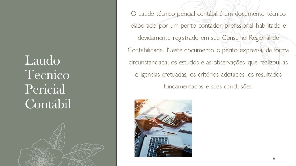 O Laudo Tecnico Pericial Contábil é um documento emitido pelo profissional contador responsável pela elaboração dos cálculos técnicos a que se refere.